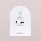 Diese halbrunde Geburtskarte mit bogenförmiger Oberkante kann auf der Vorder- und Rückseite mit Infos rund um die Geburt Ihres Babys personalisiert werden.