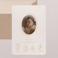 Die Geburtskarte mit Foto „Golden Frame“ ist mit zarten Goldverzierungen versehen und enthält alle wichtigen Details zur Geburt Ihres Babys. Diese elegante und zeitlose goldene Geburtsanzeige ist eine wunderschöne Ankündigung, die Sie teilen und viele Jahre lang aufbewahren können.
