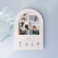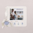 Mit ihren sanften Blautönen präsentiert die Geburtkarte mit Foto „Fotostreifen - Blau“ eine Fotoreportage Ihres kleinen Mädchens oder Jungen. Die Details seiner Geburt sind unter seinem kalligraphierten Vornamen hübsch illustriert und eignen sich perfekt, um liebevoll von seiner Ankunft zu erzählen.