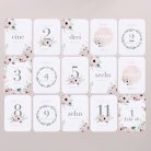 Das Meilensteinkarten Set besteht aus einem hübschen Etui mit 15 Karten (von 1 Woche bis 12 Monate), die auf der Vorderseite illustriert sind und auf der Rückseite Platz für Ihre Notizen bieten, um die Entwicklung und Erlebnisse Ihres Babys festzuhalten.