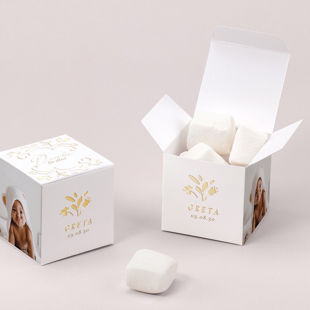 Um Ihre Liebsten zu überraschen, bestücken Sie diesen kleinen Geschenkboxen mit unseren leckeren Dragees eines französischen Konditormeisters. (optional erhältlich) Wir empfehlen 20 Dragees pro Box. (50g)