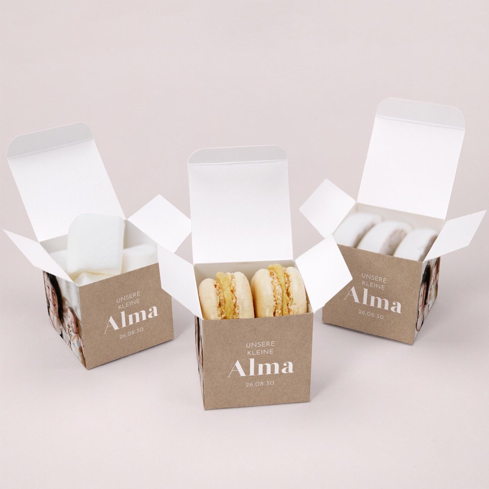 Um Ihre Liebsten zu überraschen, bestücken Sie diesen kleinen Geschenkboxen mit unseren leckeren Dragees eines französischen Konditormeisters. (optional erhältlich) Wir empfehlen 20 Dragees pro Box. (50g)