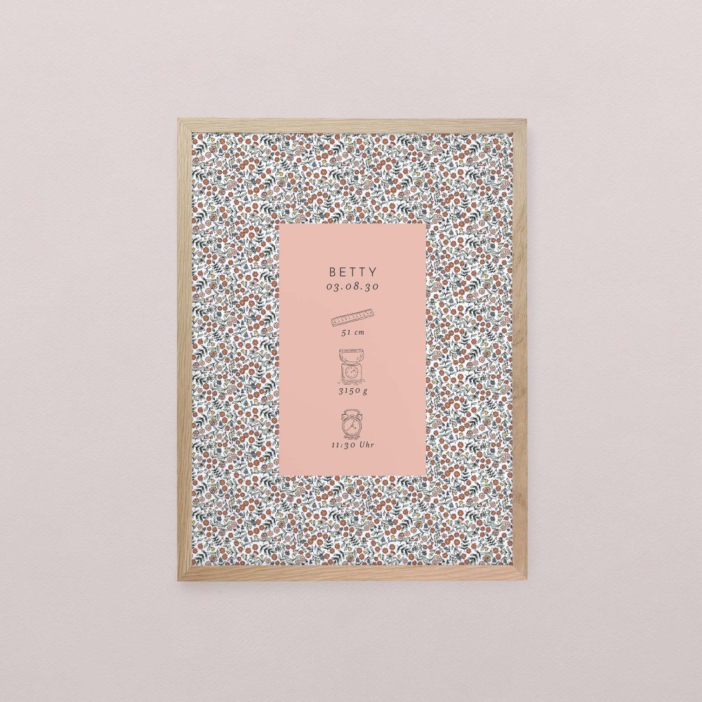 Dekoratives Poster mit Illustration und den wichtigsten Details zur Geburt: Name, Gewicht, Größe des Babys sowie Datum und Uhrzeit!