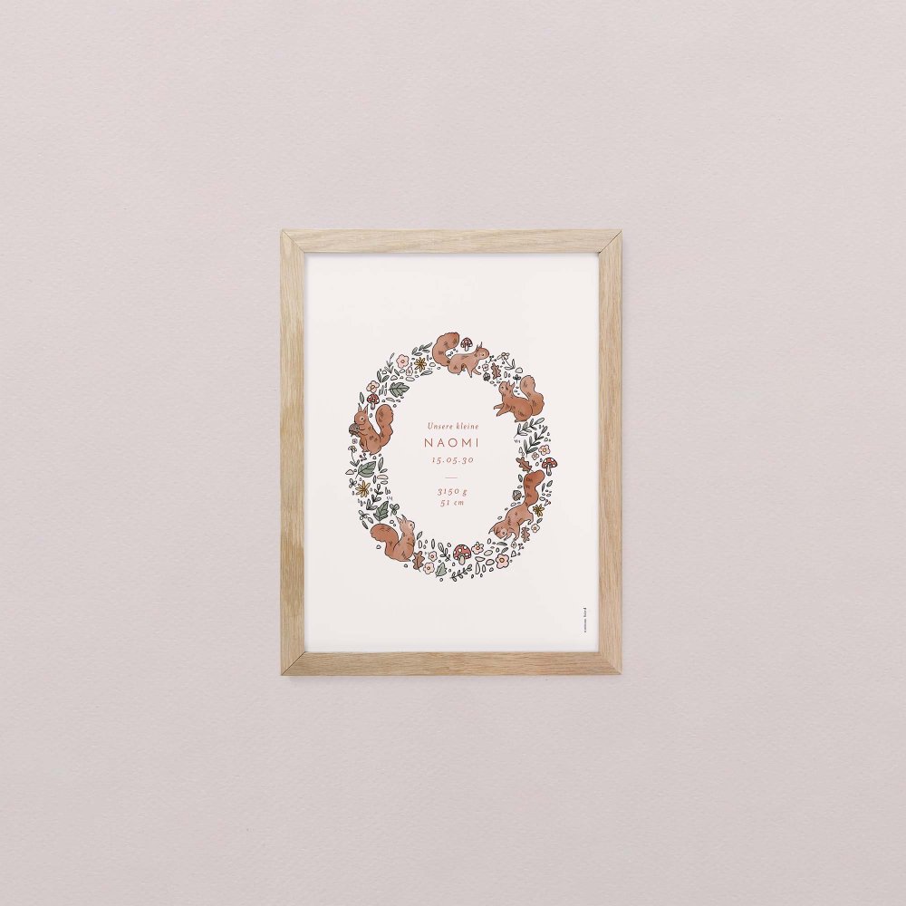 Dekoratives Poster mit Illustration und den wichtigsten Details zur Geburt: Name, Gewicht, Größe des Babys sowie Datum und Uhrzeit!