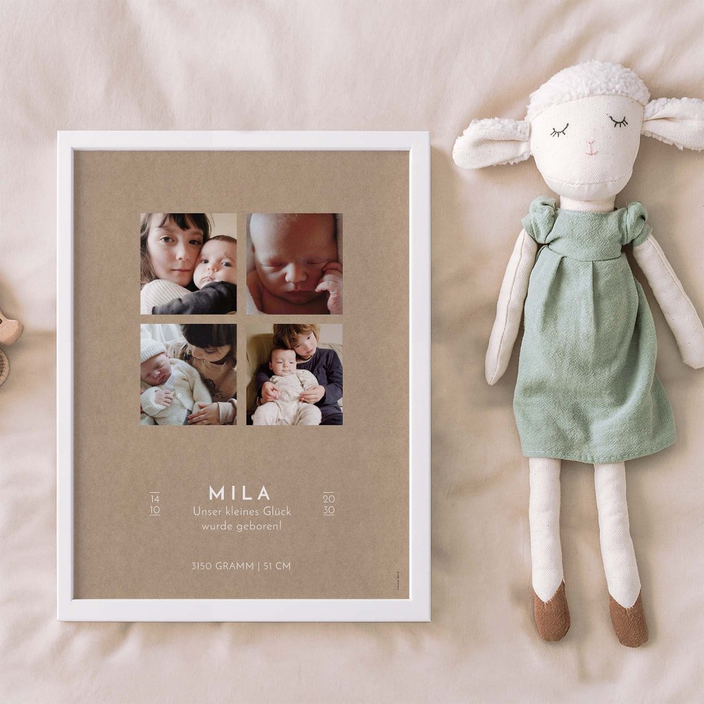Die Ankunft des Babys ist ein magischer Moment, den wir zelebrieren und für immer in Erinnerung behalten möchten. Gestalten Sie jetzt Ihr eigenes Erinnerungs-Poster mit dem Sie das Kinderzimmer oder die Wohnung dekorieren.