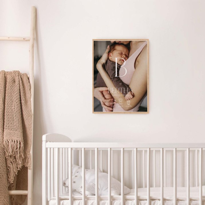 Die Ankunft des Babys ist ein magischer Moment, den wir zelebrieren und für immer in Erinnerung behalten möchten. Gestalten Sie jetzt Ihr eigenes Erinnerungs-Poster mit dem Sie das Kinderzimmer oder die Wohnung dekorieren.