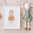 Dekoratives Poster mit Illustration und den wichtigsten Details zur Geburt: Name, Gewicht, Größe des Babys sowie Datum und Uhrzeit!