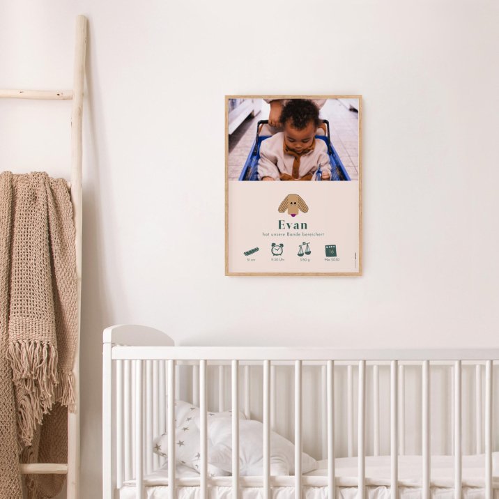 Die Ankunft des Babys ist ein magischer Moment, den wir zelebrieren und für immer in Erinnerung behalten möchten. Gestalten Sie jetzt Ihr eigenes Erinnerungs-Poster mit dem Sie das Kinderzimmer oder die Wohnung dekorieren.