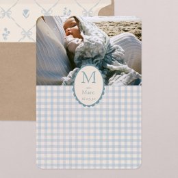 – Farbe: blau, beige – Thema: originell, farbenfroh – Illustrationen: Vichy-Muster
