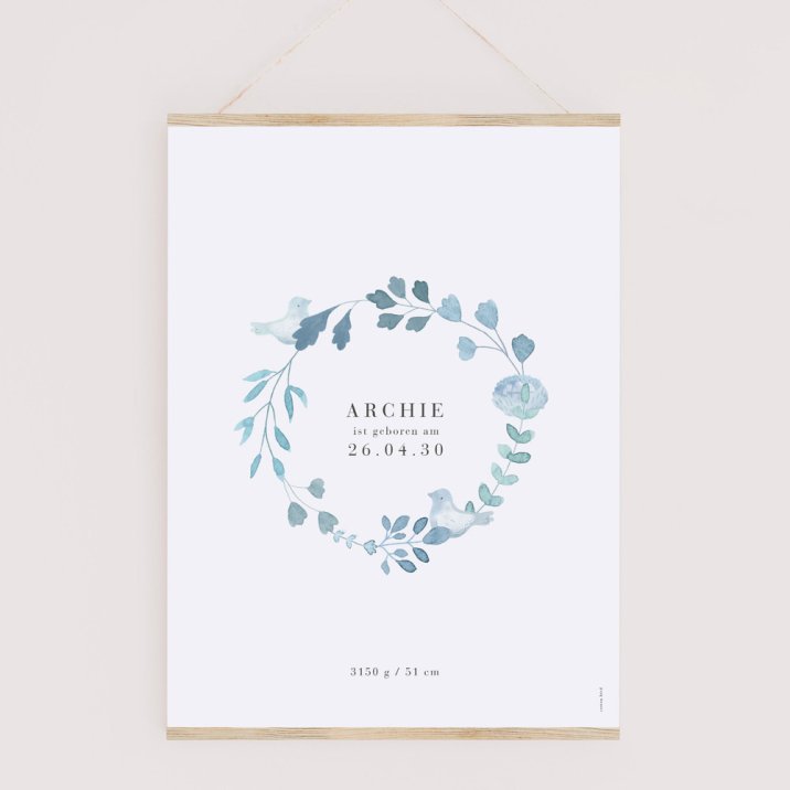 Ihre Geburtskarte als Poster! Dekorieren Sie das Kinderzimmer mit diesem hübschen Poster als Erinnerung an die Geburt Ihres Babys. Gestalten Sie das Design mit dem Namen Kindes, der Größe, dem Gewicht und sowie dem Datum und der Uhrzeit der Geburt.