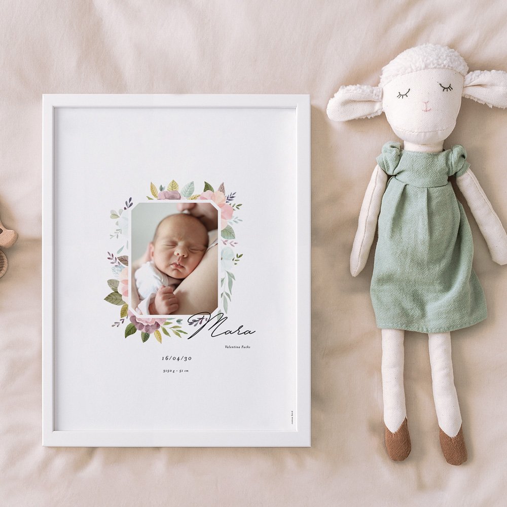 Das Poster Rosarium ist eine schöne Möglichkeit, die Geburt Ihres Kindes zu feiern und sich lange an diesen wunderbaren Moment zu erinnern. Mit seinem minimalistischen Design, einem zentralen Foto und dem schönen Blumenmotiv in sanften Farben lässt sich das Poster leicht in die Deko des Babyzimmers integrieren!