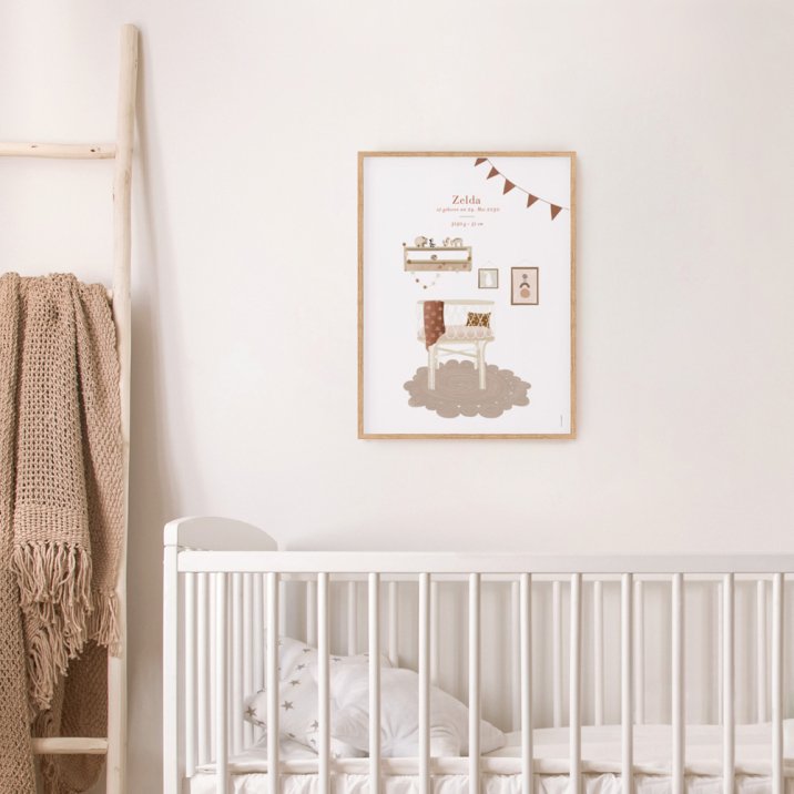 Ihre Geburtskarte als Poster! Dekorieren Sie das Kinderzimmer mit diesem hübschen Poster als Erinnerung an die Geburt Ihres Babys. Gestalten Sie das Design mit dem Namen Kindes, der Größe, dem Gewicht und sowie dem Datum und der Uhrzeit der Geburt.