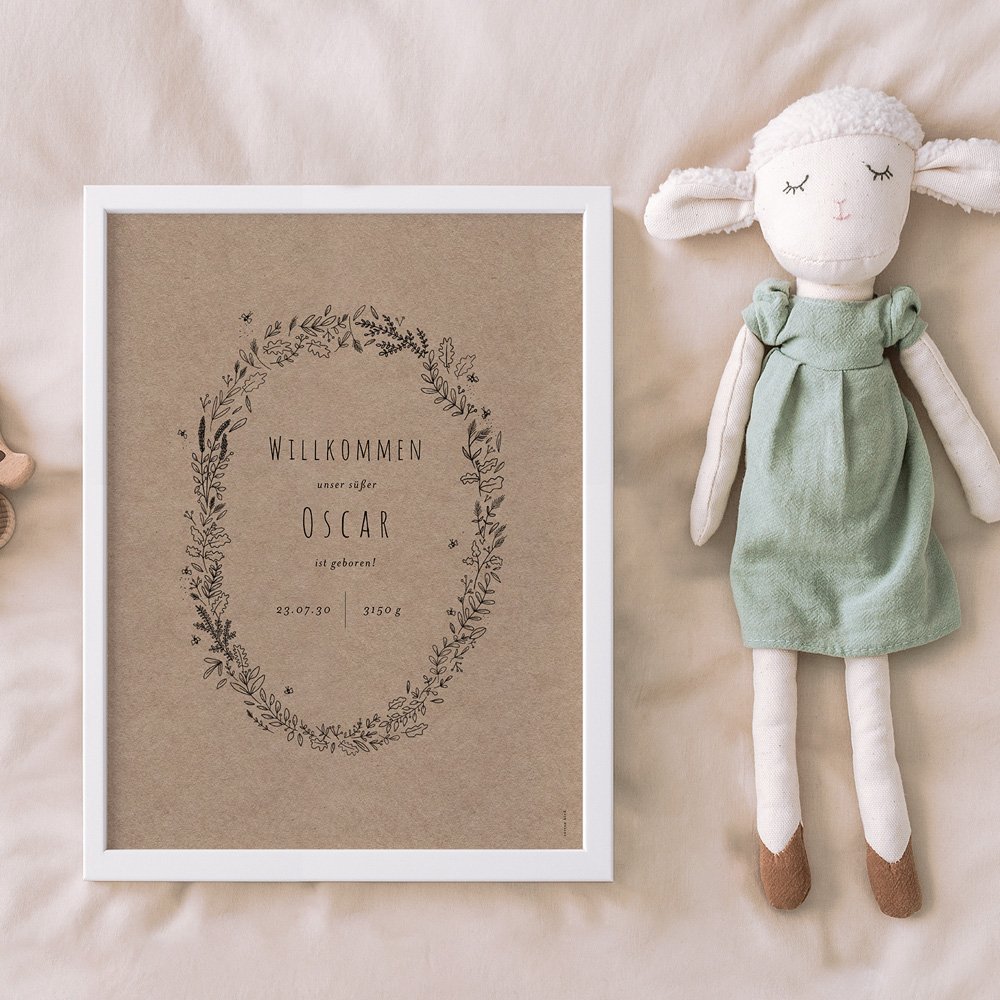 Ihre Geburtskarte als Poster! Dekorieren Sie das Kinderzimmer mit diesem hübschen Poster als Erinnerung an die Geburt Ihres Babys. Gestalten Sie das Design mit dem Namen Kindes, der Größe, dem Gewicht und sowie dem Datum und der Uhrzeit der Geburt.