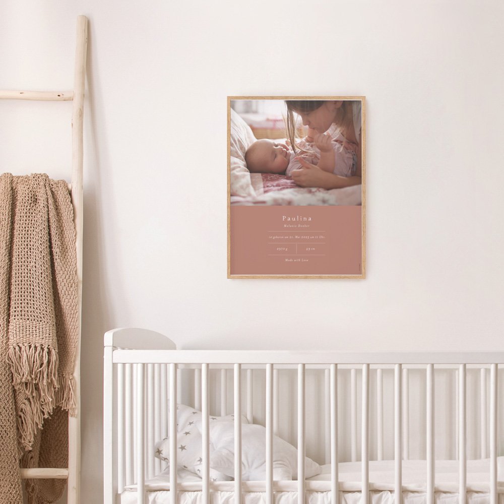 Ihre Geburtskarte als Poster! Dekorieren Sie das Kinderzimmer mit diesem hübschen Poster als Erinnerung an die Geburt Ihres Babys. Gestalten Sie das Design mit dem Namen Kindes, der Größe, dem Gewicht und sowie dem Datum und der Uhrzeit der Geburt.