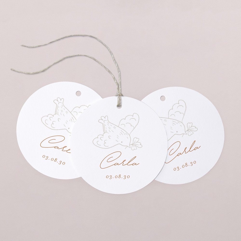 Die hübschen runden Anhänger eignen sich hervorragend, um kleine Präsente, Geschenkboxen und andere Aufmerksamkeiten zu personalisieren.