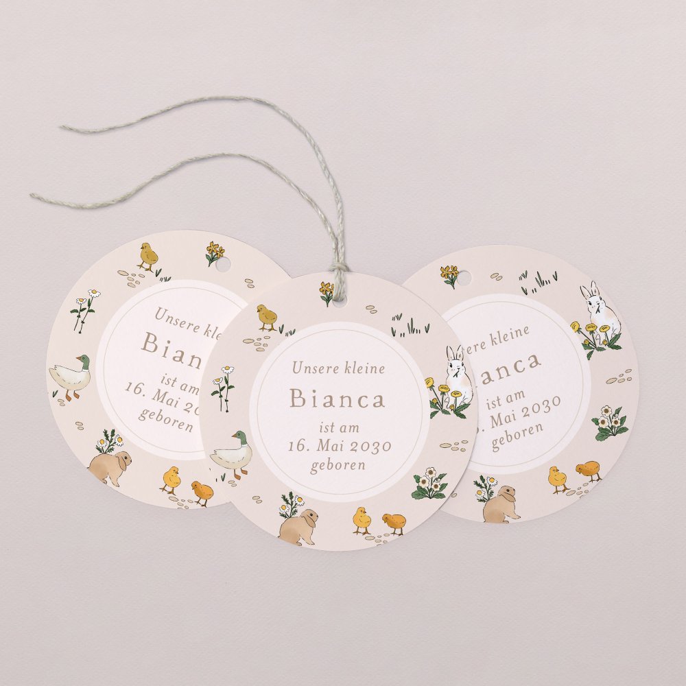 Die hübschen runden Anhänger eignen sich hervorragend, um kleine Präsente, Geschenkboxen und andere Aufmerksamkeiten zu personalisieren.