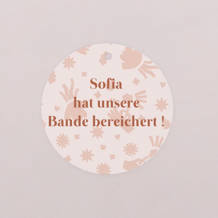 Die hübschen runden Anhänger eignen sich hervorragend, um kleine Präsente, Geschenkboxen und andere Aufmerksamkeiten zu personalisieren.