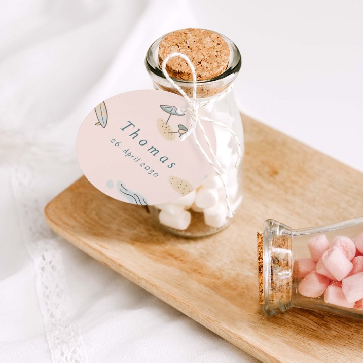 Die hübschen runden Anhänger eignen sich hervorragend, um kleine Präsente, Geschenkboxen und andere Aufmerksamkeiten zu personalisieren.