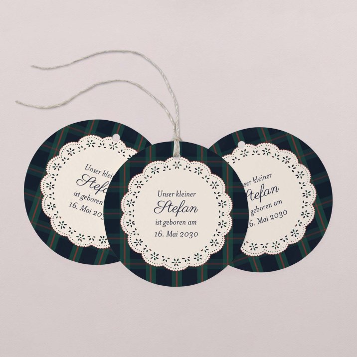 Die hübschen runden Anhänger eignen sich hervorragend, um kleine Präsente, Geschenkboxen und andere Aufmerksamkeiten zu personalisieren.