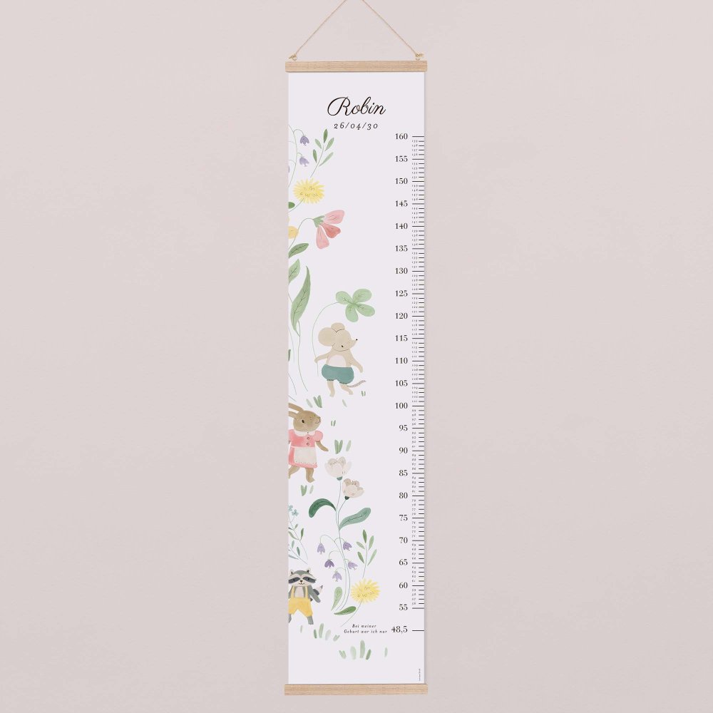 Unsere Designer haben ein exklusives Papier der Velin Edition aus 100% Baumwolle ausgewählt. Es handelt sich um ein außergewöhnliches Material, das in Galerien und Museen für seine besondere Oberflächenstruktur und lange Haltbarkeit für Kunstwerke ausgewählt wird. Die Messlatte für Ihr Kind wirkt zusammen mit dem hochwertig verarbeiteten Posterhalter aus Holz wie ein echtes Kunstwerk.