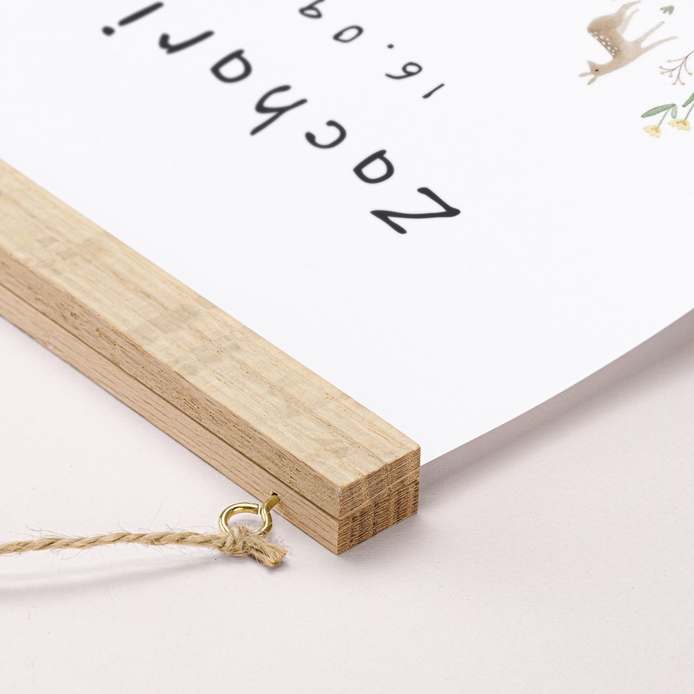 Mit dem eleganten Posterhalter im Kinderzimmer aufgehängt, kommt die Messlatte und das hochwertige Papier aus dem sie hergestellt ist perfekt zur Geltung. Das qualitativ hochwertige Holz des Posterhalters sorgt für einen natürlichen, eleganten Look.