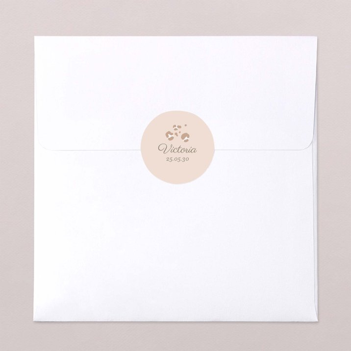 Bekleben Sie die Briefumschläge der Einladungskarten, Danksagungen oder kleine Geschenke mit diesen süßen Stickern. Die Aufkleber lassen sich in wenigen Handgriffen mit dem Namen und Geburtsdatum Ihres Kindes gestalten.