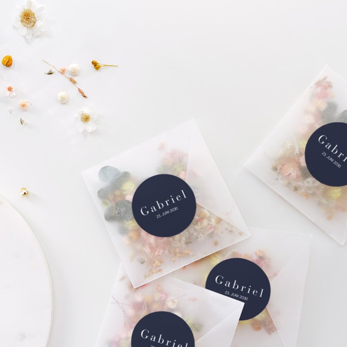 Bekleben Sie die Briefumschläge der Einladungskarten, Danksagungen oder kleine Geschenke mit diesen süßen Stickern. Die Aufkleber lassen sich in wenigen Handgriffen mit dem Namen und Geburtsdatum Ihres Kindes gestalten.