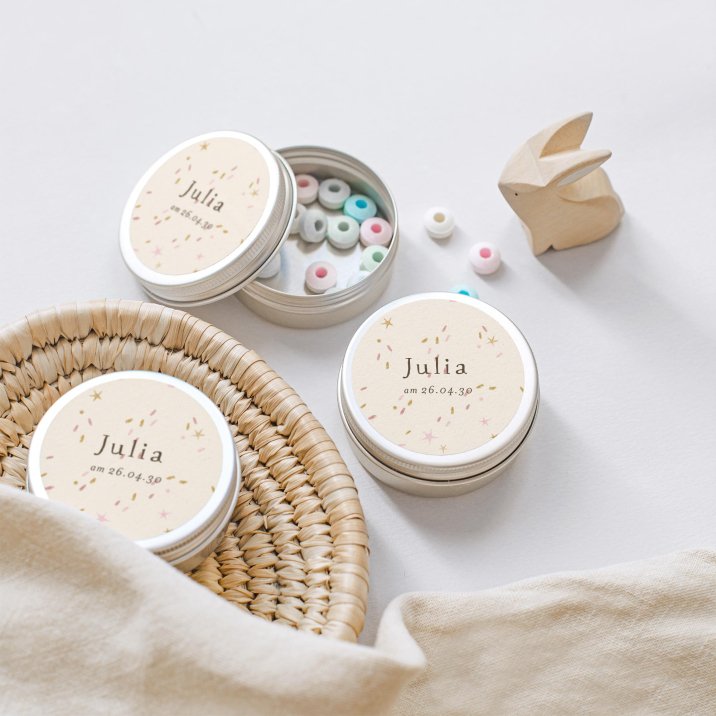 Mit dem Namen Ihres Kindes und einer persönlichen Notiz gestaltet, können Sie mit den großen runden Aufklebern die verschiedensten Artikel schmücken: Briefumschläge, Geschenke, Marmeladengläser, Kerzen, und vieles mehr...!
