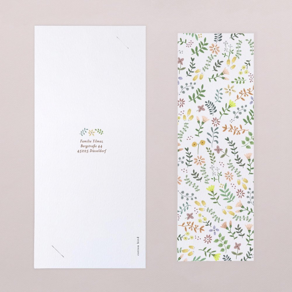 Diese Danksagung hat es in sich: die Klappkarte im Hochformat beinhaltet einen Fotostreifen mit Platz für 3 Ihrer schönsten Babyfotos.