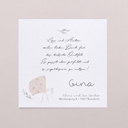 Diese Danksagung hat es in sich: die Klappkarte im Hochformat beinhaltet einen Fotostreifen mit Platz für 3 Ihrer schönsten Babyfotos.
