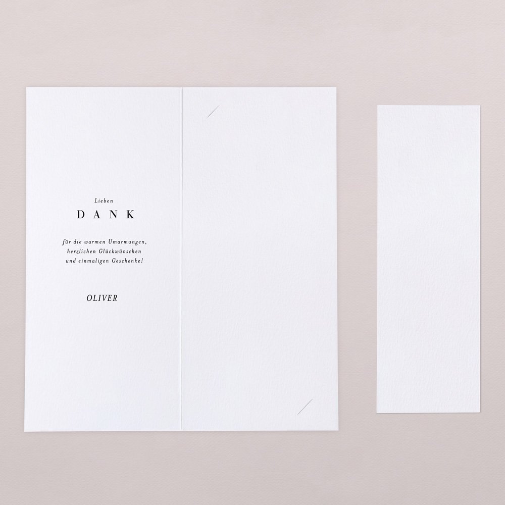Diese Danksagung hat es in sich: die Klappkarte im Hochformat beinhaltet einen Fotostreifen mit Platz für 3 Ihrer schönsten Babyfotos.