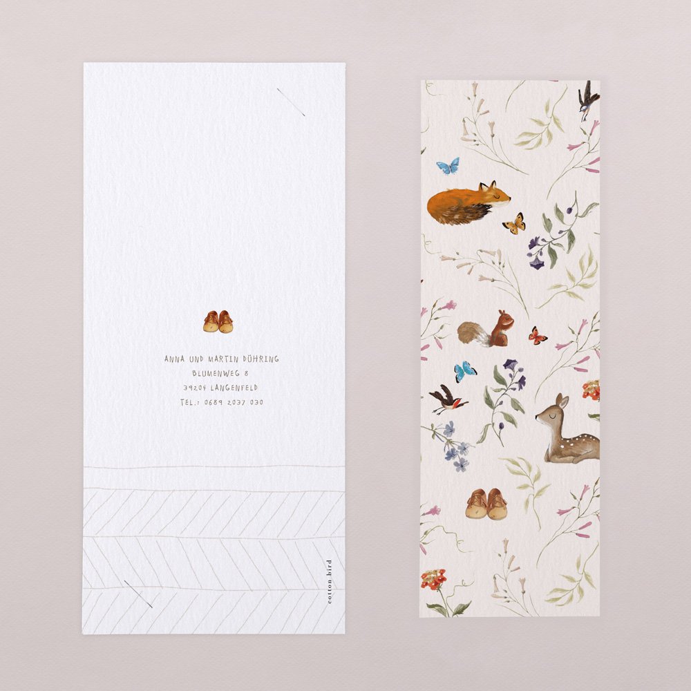 Diese Danksagung hat es in sich: die Klappkarte im Hochformat beinhaltet einen Fotostreifen mit Platz für 3 Ihrer schönsten Babyfotos.