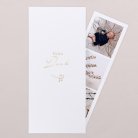 Diese Danksagung hat es in sich: die Klappkarte im Hochformat beinhaltet einen Fotostreifen mit Platz für 3 Ihrer schönsten Babyfotos.