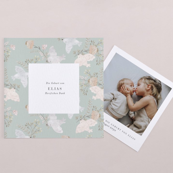 Bedanken Sie sich bei Ihren Lieben, die Sie anlässlich der Geburt Ihres Babys mit Aufmerksamkeiten überrascht und verwöhnt haben, mit einer hübschen persönlichen Karte. Diese Dankeskarte wird von einem Geschenk begleitet, das in die Karte gelegt wird: ein Foto Ihres Neugeborenen im Polaroid-Format (nicht magnetisch), das sie als Andenken aufbewahren, nach Lust und Laune aufhängen oder als Lesezeichen verwenden können...