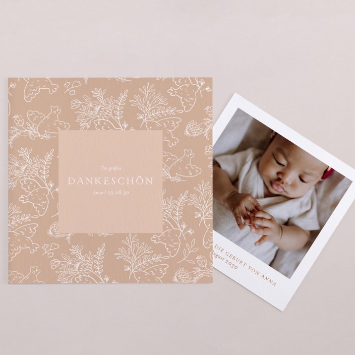 Bedanken Sie sich bei Ihren Lieben, die Sie anlässlich der Geburt Ihres Babys mit Aufmerksamkeiten überrascht und verwöhnt haben, mit einer hübschen persönlichen Karte. Diese Dankeskarte wird von einem Geschenk begleitet, das in die Karte gelegt wird: ein Foto Ihres Neugeborenen im Polaroid-Format (nicht magnetisch), das sie als Andenken aufbewahren, nach Lust und Laune aufhängen oder als Lesezeichen verwenden können...