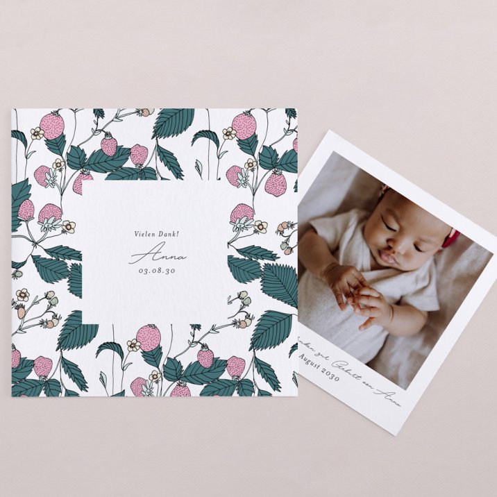 Bedanken Sie sich bei Ihren Lieben, die Sie anlässlich der Geburt Ihres Babys mit Aufmerksamkeiten überrascht und verwöhnt haben, mit einer hübschen persönlichen Karte. Diese Dankeskarte wird von einem Geschenk begleitet, das in die Karte gelegt wird: ein Foto Ihres Neugeborenen im Polaroid-Format (nicht magnetisch), das sie als Andenken aufbewahren, nach Lust und Laune aufhängen oder als Lesezeichen verwenden können...