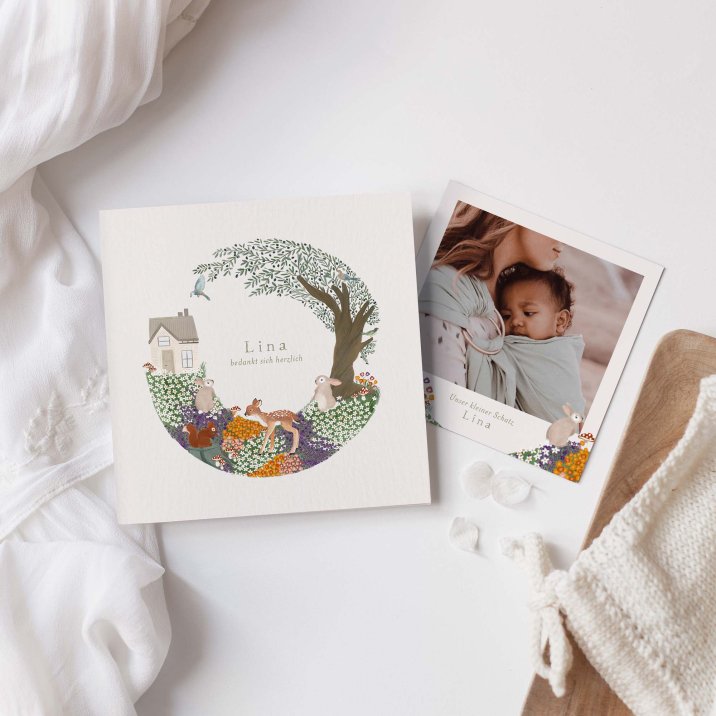 Bedanken Sie sich bei Ihren Lieben, die Sie anlässlich der Geburt Ihres Babys mit Aufmerksamkeiten überrascht und verwöhnt haben, mit einer hübschen persönlichen Karte. Diese Dankeskarte wird von einem Geschenk begleitet, das in die Karte gelegt wird: ein Foto Ihres Neugeborenen im Polaroid-Format (nicht magnetisch), das sie als Andenken aufbewahren, nach Lust und Laune aufhängen oder als Lesezeichen verwenden können...