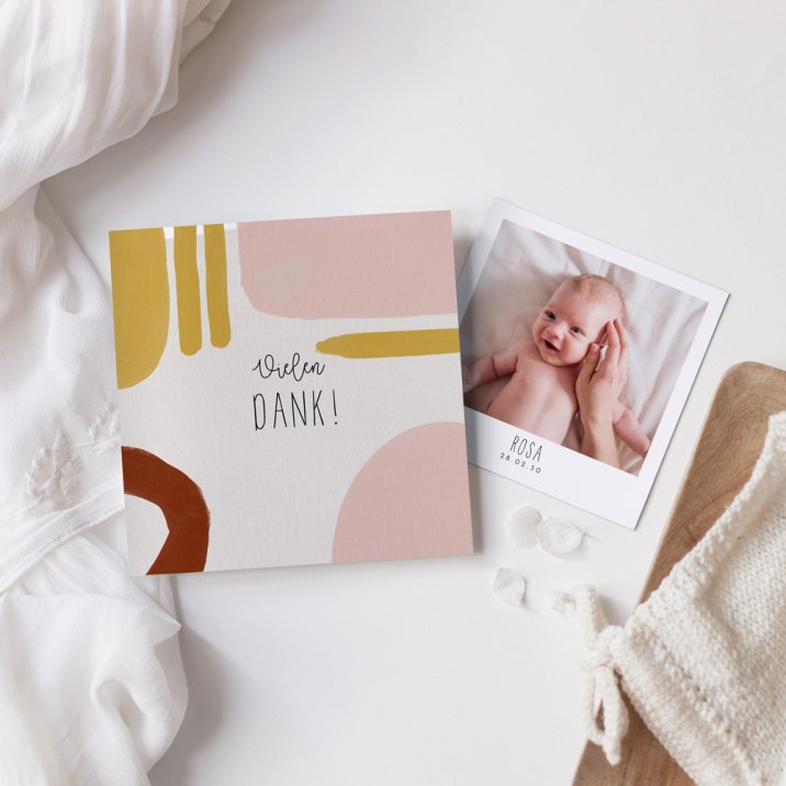Bedanken Sie sich bei Ihren Lieben, die Sie anlässlich der Geburt Ihres Babys mit Aufmerksamkeiten überrascht und verwöhnt haben, mit einer hübschen persönlichen Karte. Diese Dankeskarte wird von einem Geschenk begleitet, das in die Karte gelegt wird: ein Foto Ihres Neugeborenen im Polaroid-Format (nicht magnetisch), das sie als Andenken aufbewahren, nach Lust und Laune aufhängen oder als Lesezeichen verwenden können...