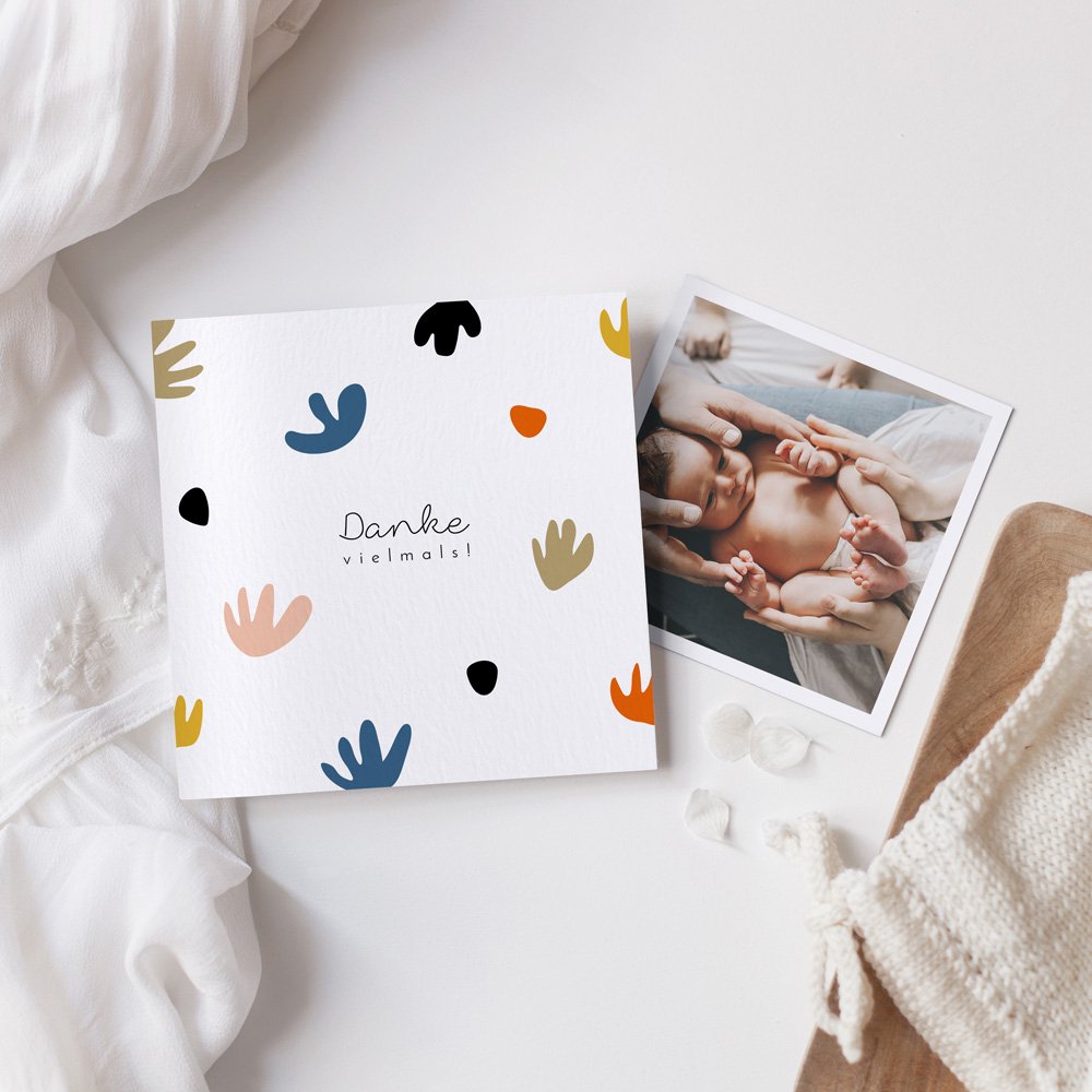 Bedanken Sie sich bei Ihren Lieben, die Sie anlässlich der Geburt Ihres Babys mit Aufmerksamkeiten überrascht und verwöhnt haben, mit einer hübschen persönlichen Karte. Diese Dankeskarte wird von einem Geschenk begleitet, das in die Karte gelegt wird: ein Foto Ihres Neugeborenen im Polaroid-Format (nicht magnetisch), das sie als Andenken aufbewahren, nach Lust und Laune aufhängen oder als Lesezeichen verwenden können...