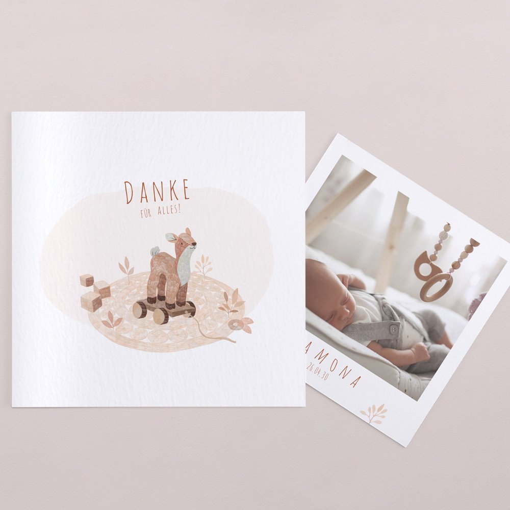 Bedanken Sie sich bei Ihren Lieben, die Sie anlässlich der Geburt Ihres Babys mit Aufmerksamkeiten überrascht und verwöhnt haben, mit einer hübschen persönlichen Karte. Diese Dankeskarte wird von einem Geschenk begleitet, das in die Karte gelegt wird: ein Foto Ihres Neugeborenen im Polaroid-Format (nicht magnetisch), das sie als Andenken aufbewahren, nach Lust und Laune aufhängen oder als Lesezeichen verwenden können...