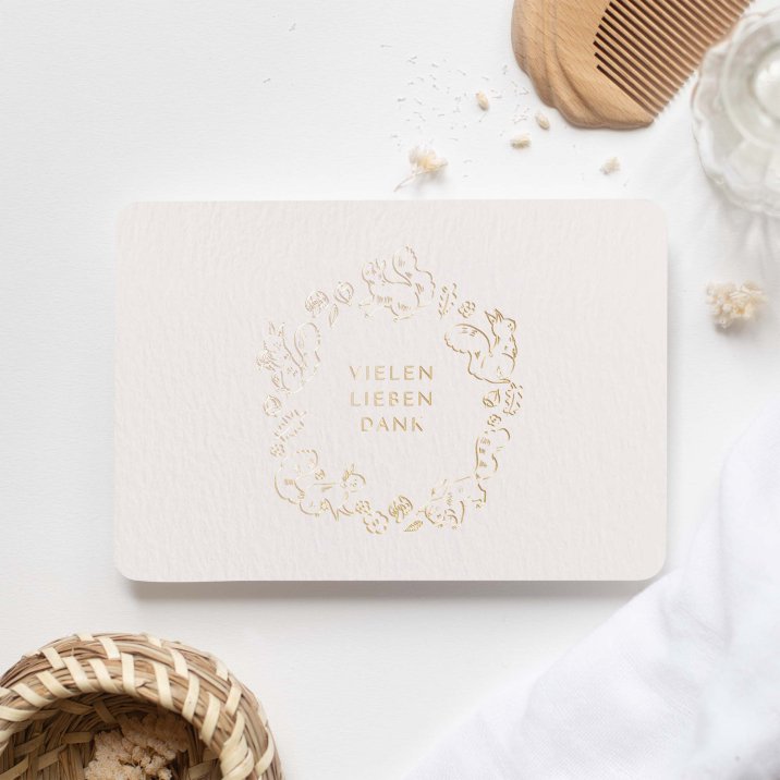 Bedanken Sie sich bei Verwandten und Freunden für die Glückwünsche und Geschenke zur Geburt mit einer hübschen Dankeskarte.