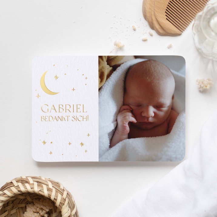 Bedanken Sie sich bei Verwandten und Freunden für die Glückwünsche und Geschenke zur Geburt mit einer hübschen Dankeskarte.