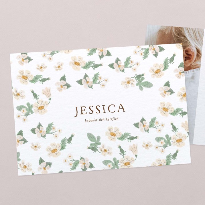 Wählen Sie Ihre Danksagung entweder passend zu Ihrer Geburtskarte oder versenden Sie ein anderes Design, das Ihnen gefällt. Gestalten Sie die Karte mit einem süßen Foto von Ihrem Baby und herzlichen Dankesworten, um so auf stilvolle Art und Weise "Danke" zu sagen.