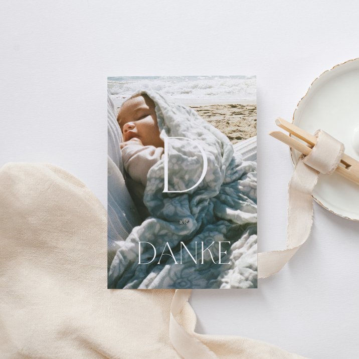 Wählen Sie Ihre Danksagung entweder passend zu Ihrer Geburtskarte oder versenden Sie ein anderes Design, das Ihnen gefällt. Gestalten Sie die Karte mit einem süßen Foto von Ihrem Baby und herzlichen Dankesworten, um so auf stilvolle Art und Weise "Danke" zu sagen.