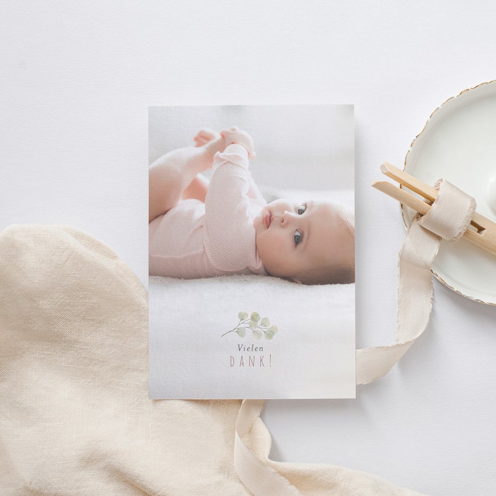 Wählen Sie Ihre Danksagung entweder passend zu Ihrer Geburtskarte oder versenden Sie ein anderes Design, das Ihnen gefällt. Gestalten Sie die Karte mit einem süßen Foto von Ihrem Baby und herzlichen Dankesworten, um so auf stilvolle Art und Weise "Danke" zu sagen.