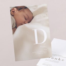 Wählen Sie Ihre Danksagung entweder passend zu Ihrer Geburtskarte oder versenden Sie ein anderes Design, das Ihnen gefällt. Gestalten Sie die Karte mit einem süßen Foto von Ihrem Baby und herzlichen Dankesworten, um so auf stilvolle Art und Weise "Danke" zu sagen.