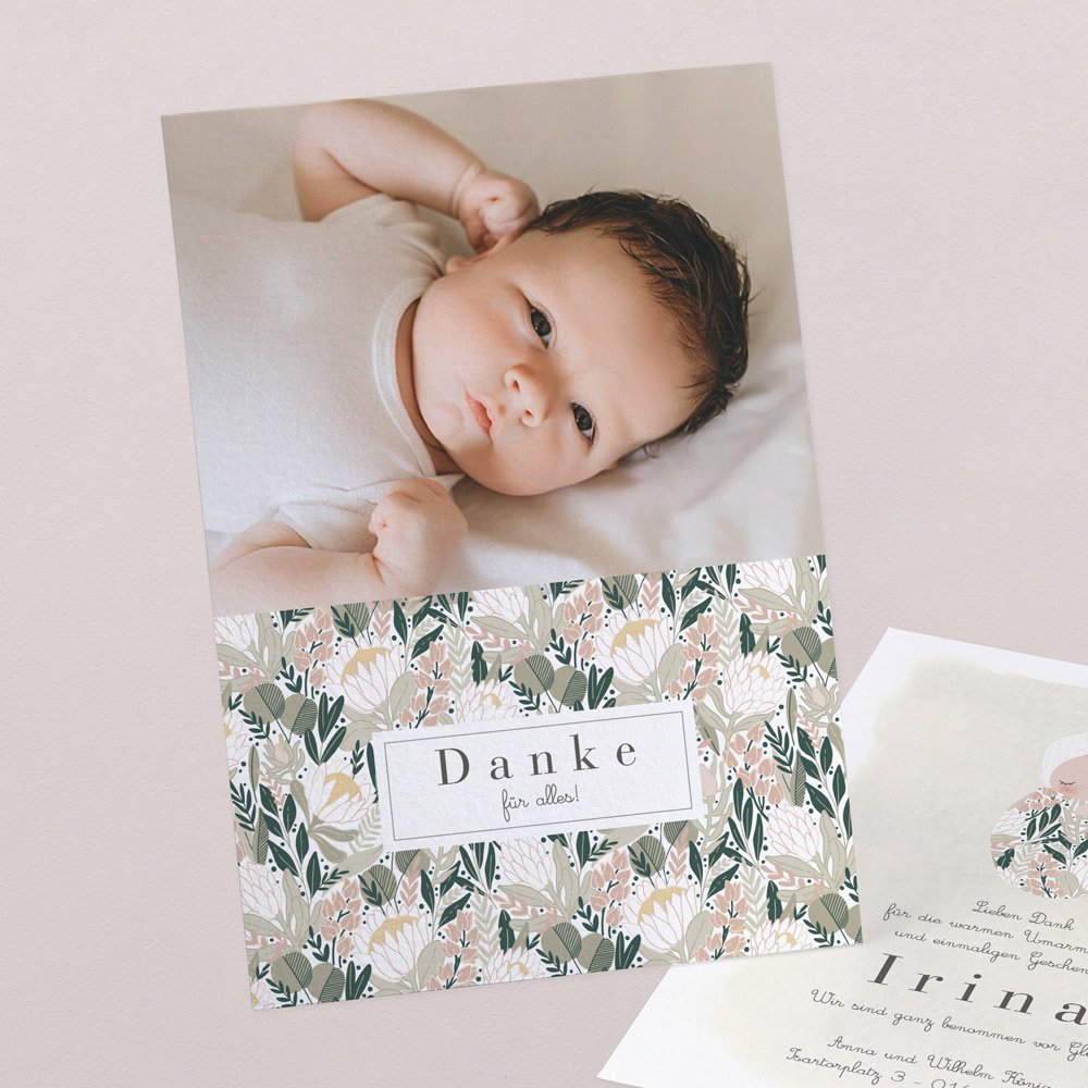 Wählen Sie Ihre Danksagung entweder passend zu Ihrer Geburtskarte oder versenden Sie ein anderes Design, das Ihnen gefällt. Gestalten Sie die Karte mit einem süßen Foto von Ihrem Baby und herzlichen Dankesworten, um so auf stilvolle Art und Weise "Danke" zu sagen.