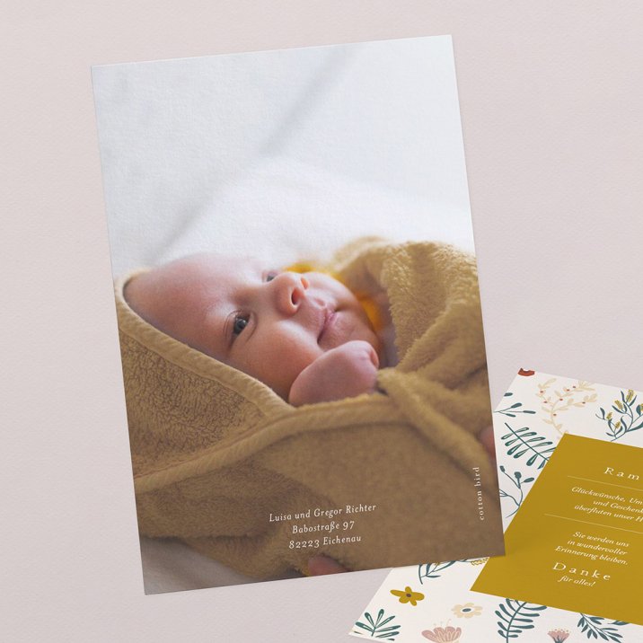 Wählen Sie Ihre Danksagung entweder passend zu Ihrer Geburtskarte oder versenden Sie ein anderes Design, das Ihnen gefällt. Gestalten Sie die Karte mit einem süßen Foto von Ihrem Baby und herzlichen Dankesworten, um so auf stilvolle Art und Weise "Danke" zu sagen.