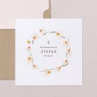 Die Einladungskarte Yellow Spring zeichnet ein sonniges Bild in warmen Gelbtönen – perfekt, um eine Feier im Frühling oder Sommer anzukündigen. Ein Kranz aus Narzissenblüten und eine kleine Biene schmücken dieses liebevoll gestaltete, zarte Design.