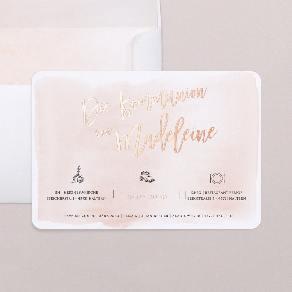Einladung mit abgerundeten Ecken, aus hochwertigem Mattpapier mit Soft-Touch Effekt